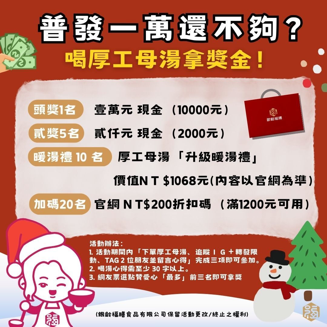 #厚工母湯#年末感恩#一週年#普發一萬#一萬元#喝湯拿獎金#好禮大放送#漢方排骨湯#年終#歲末感恩#投票#喝湯心得#好禮